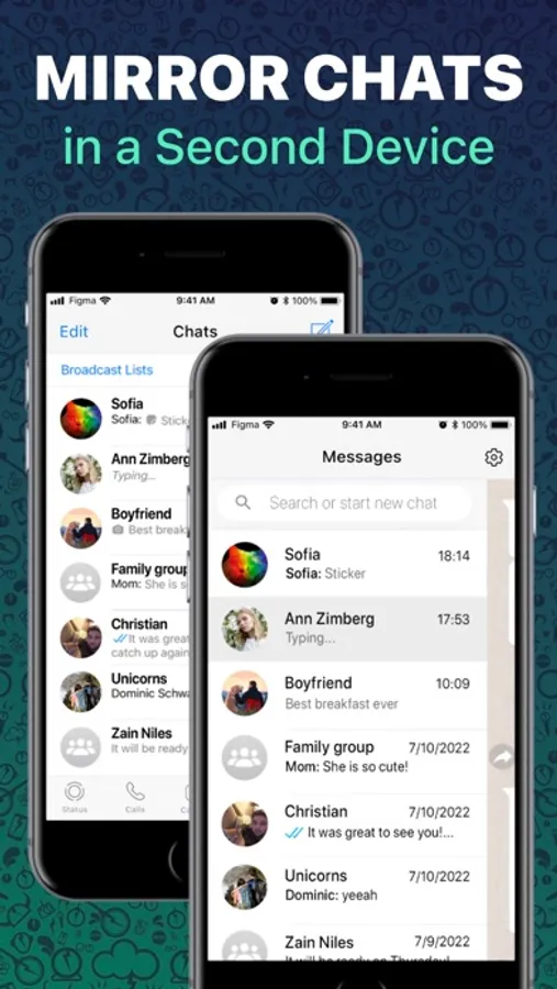 - View chats on your second phone, write messages, send photos and videos.