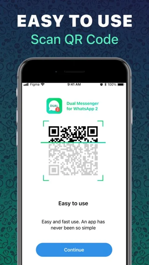 - To connect, open our Dual Messenger app and you will see a QR code, "scan" this code using WhatsApp on your phone and you'll be signed in. You can find this option in the WhatsApp settings on your phone, in the "WhatsApp Web" section.