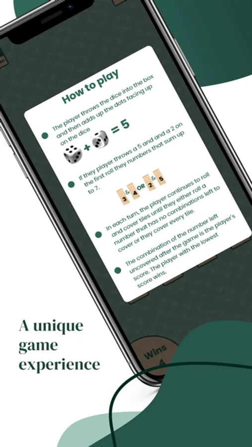 - Touch the number markers to flip them down by any combination of dice totals that you choose.