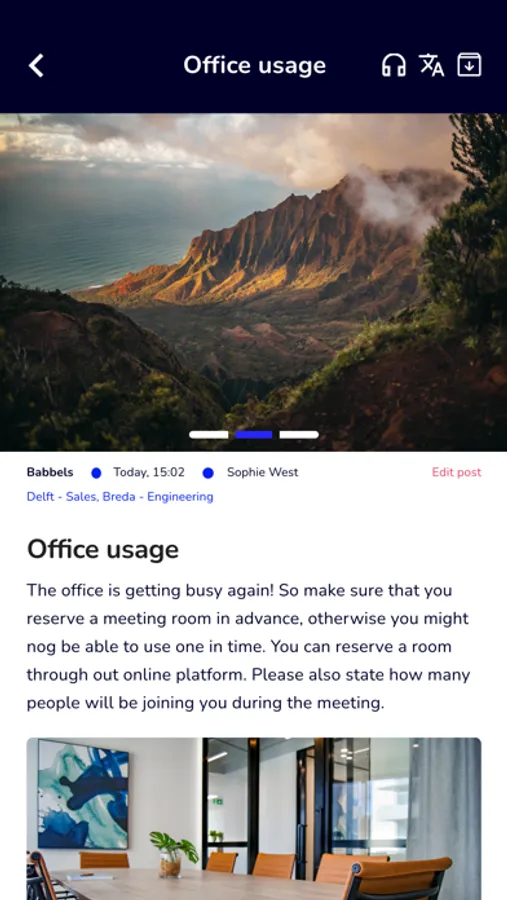 Welke talen je collega’s ook spreken: dankzij de automatische vertalingen weet je zeker dat iedereen de boodschap begrijpt. Daarbij wordt gekeken naar de ingestelde taal van het device wat vaak de eerste taal van je collega is. Zo voelt iedereen zich gezien en dankzij de reactiemogelijkheid ook gehoord.