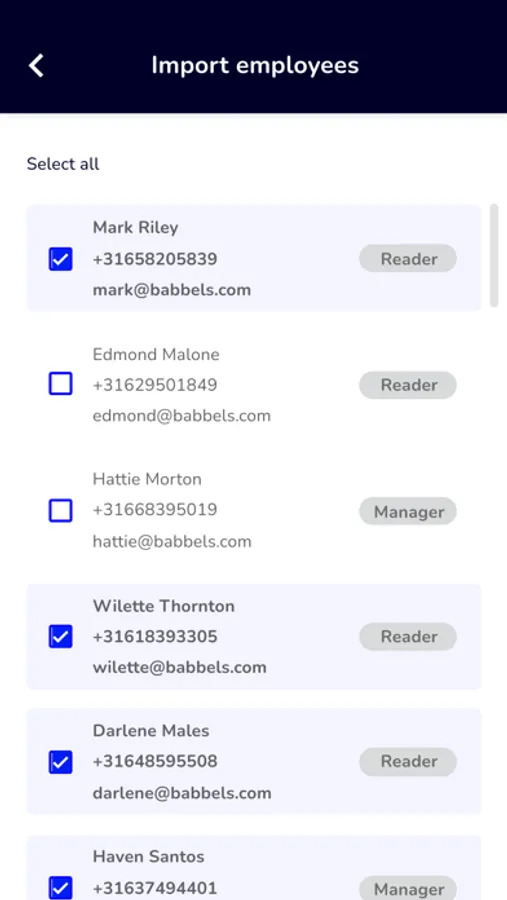 Babbels werkt voor jou in plaats van andersom. Hoe je organogram er ook uitziet, hoeveel locaties je ook hebt en hoe vaak je ook gaat reorganiseren - Babbels is direct te gebruiken (zonder lang implementatietraject), flexibel in te richten en makkelijk aan te passen.