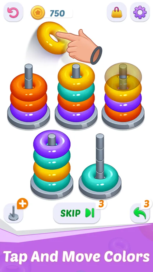 Hoop stack is a ring sorting puzzle game to keep you entertained for an hours. Water color sort puzzle games are no longer unique, that's why here is a new concept in the sorting puzzle game with colored hoop stack.