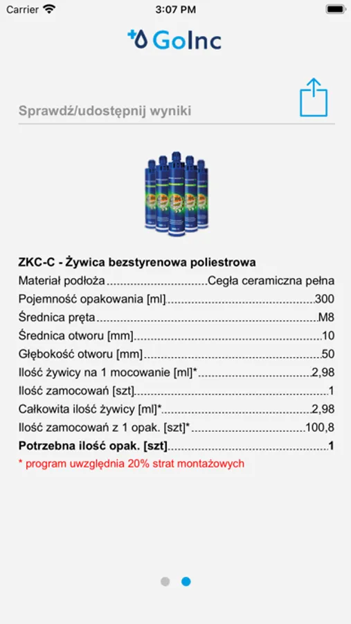 Aplikacja do wyliczania potrzebnej ilości żywicy do kotew chemicznych