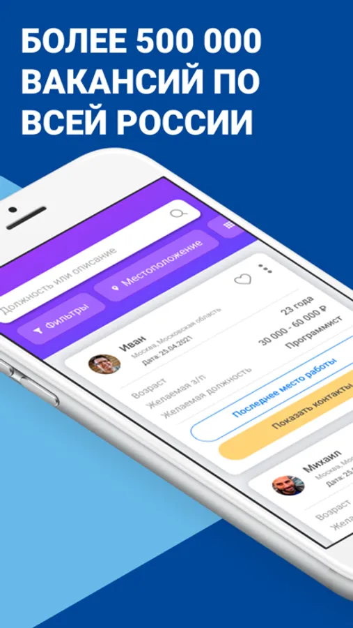 — найти работу в России, в любом районе, любого города. Сортировка вакансии идёт по 20 разным фильтрам, в том числе по местоположению, что позволит вам найти работу рядом с домом.