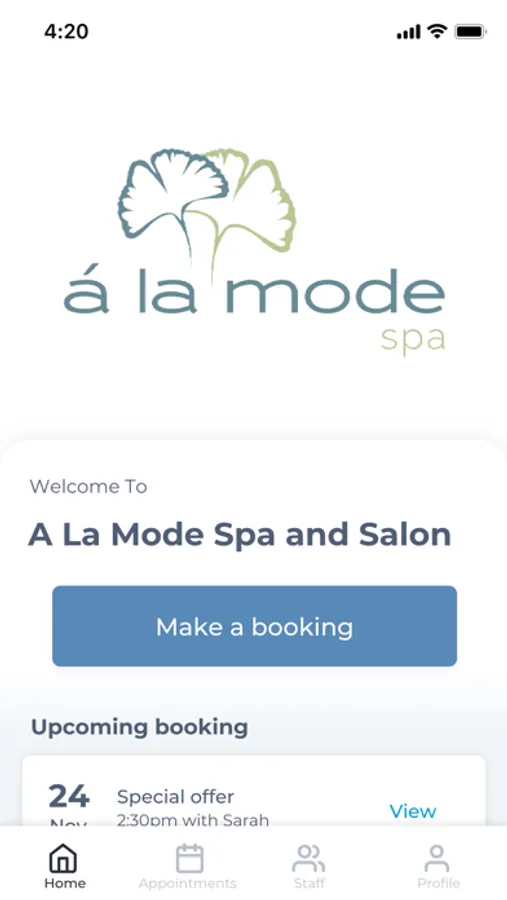 The A La Mode Spa and Salon app makes booking your appointments and managing your loyalty points even easier. You're just a few taps away from feeling good and looking great!