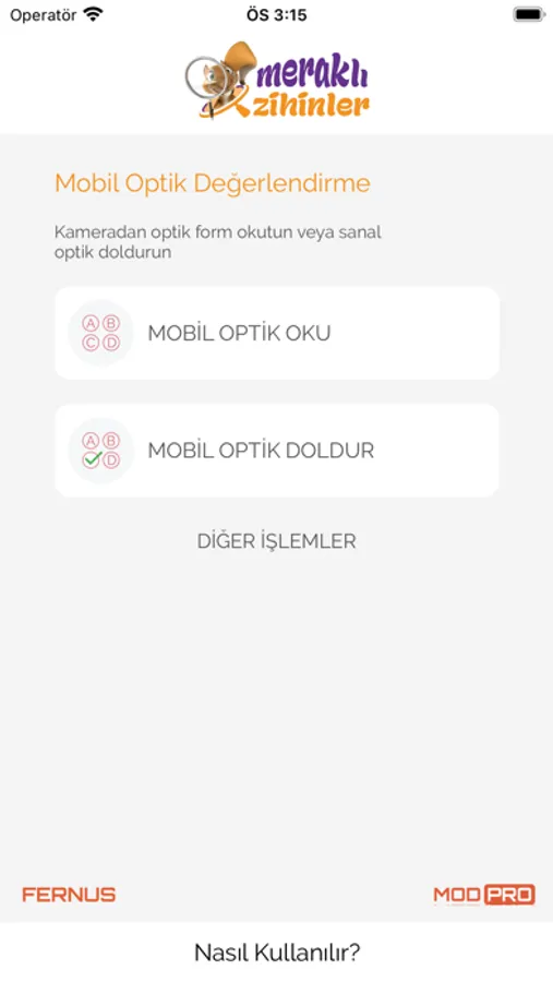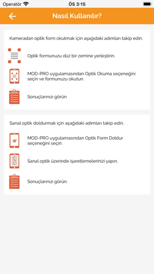 ■ Mobil Optik Değerlendirme uygulaması MOD-PRO'yu açın. Formunuzu okutun.