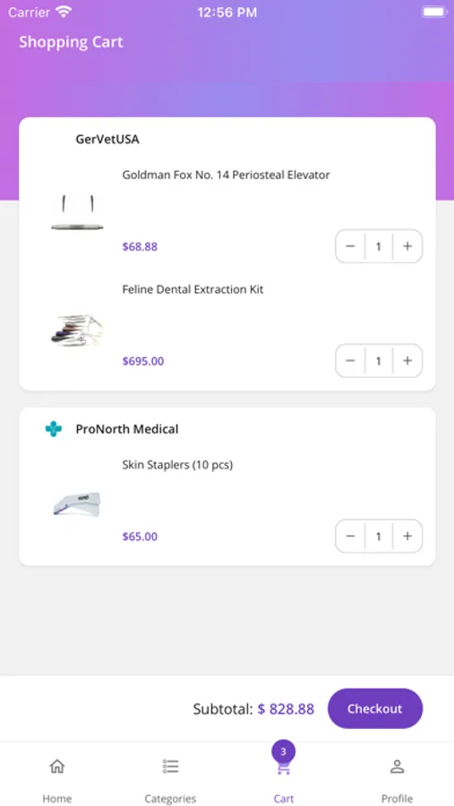 Remove Or Add Surgical Instruments In Cart And Submit an Order.