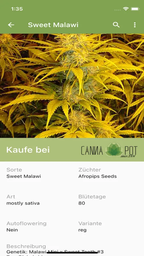 Benutze doch einfach die Strainspotter-APP von Cannapot - mit dem Strainspotter kannst du ganz einfach und schnell deinen Favoriten finden. Die App funktioniert auf allen iOS-Systemen - mit dieser App kannst du eine große Menge an zahlreichen Marihuanasorten nach verschiedensten Kriterien wählen – es gibt verschiedene Suchmöglichkeiten wie zum Beispiel: