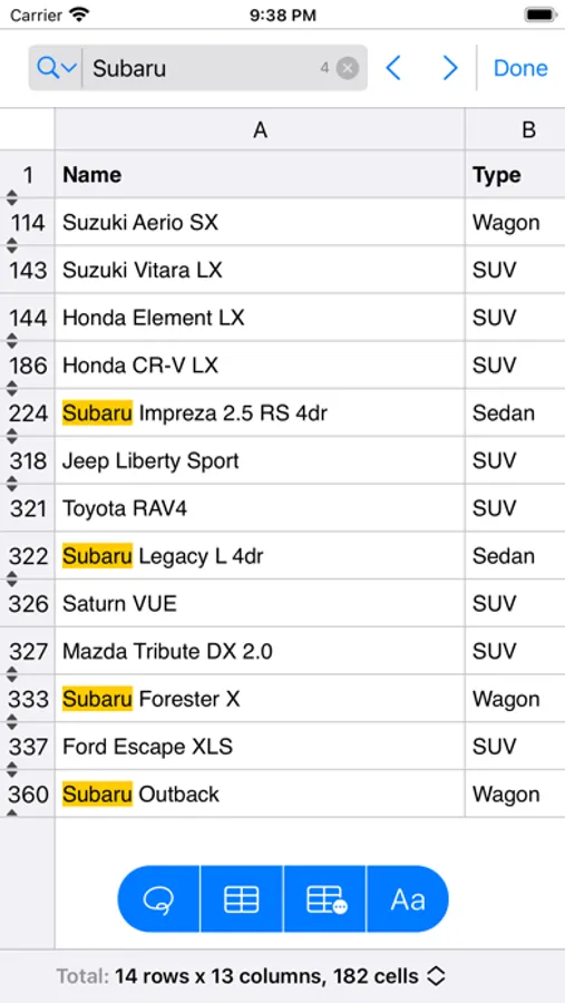 • Choose where to search: in the entire document or specific columns, rows or cells