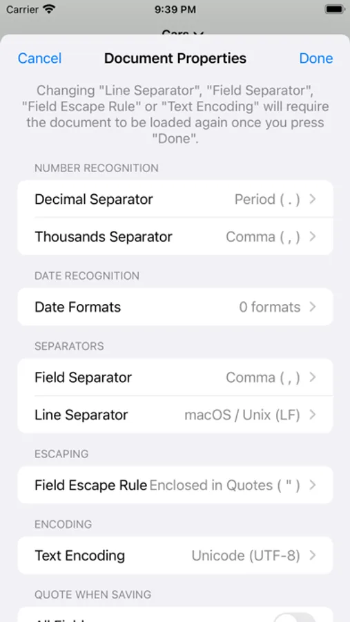 • Open, create, edit and save CSV files even if they are not properly formatted, like don't have the same number of fields in each row