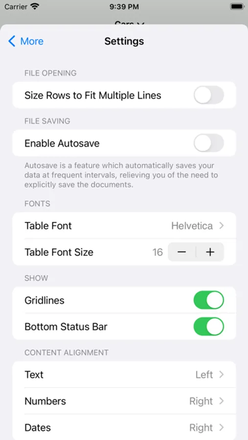• Many options available in "More → Settings" to make the app look and behave exactly the way you want