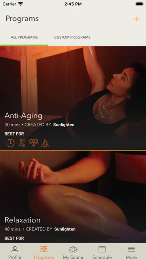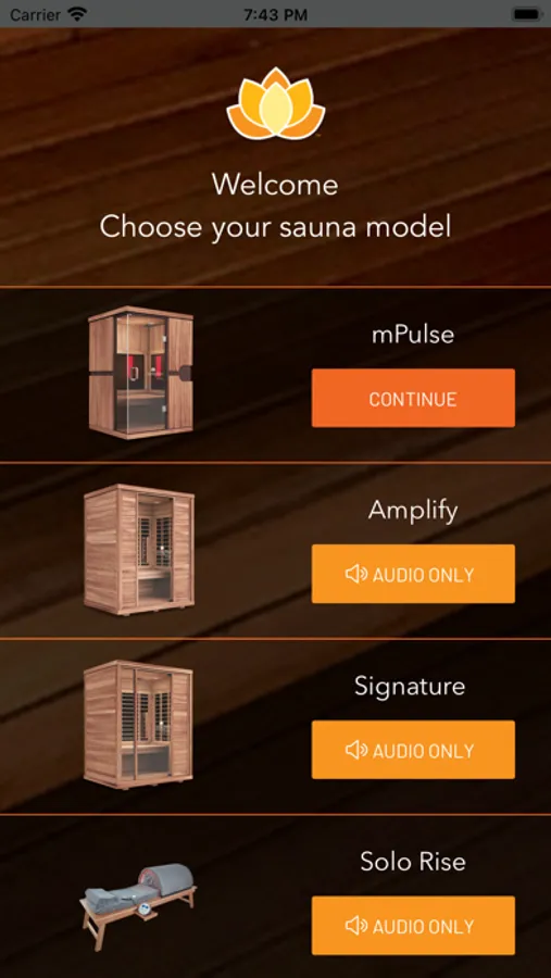 Note: The Sunlighten App is currently available exclusively for iOS devices (12 or later). *Sunlighten mobile app is currently available exclusively for full use with mPulse saunas and iPhone users on iOS 12 or later. The Sunlighten mobile app can also be used with Amplify, Signature and Solo Rise models for audio control only at this time.