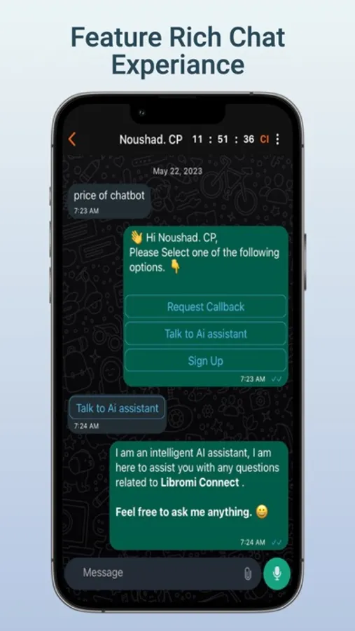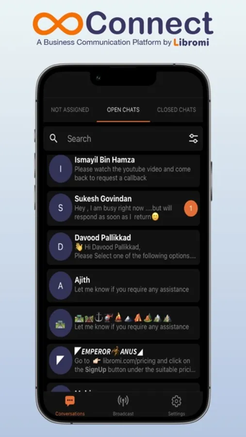 Unlock the full potential of your business communication with Libromi's User Agent App. Connect is a powerful platform that enables Multi User agent Chat Solution, powered by the official WhatsApp Cloud API. Sign up your company as a business on Libromi and create a user agent account to start using this game-changing app. Streamline your conversations, boost productivity, and take customer engagement to new heights. Download now and revolutionize your business communication!