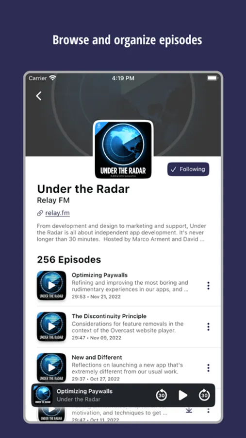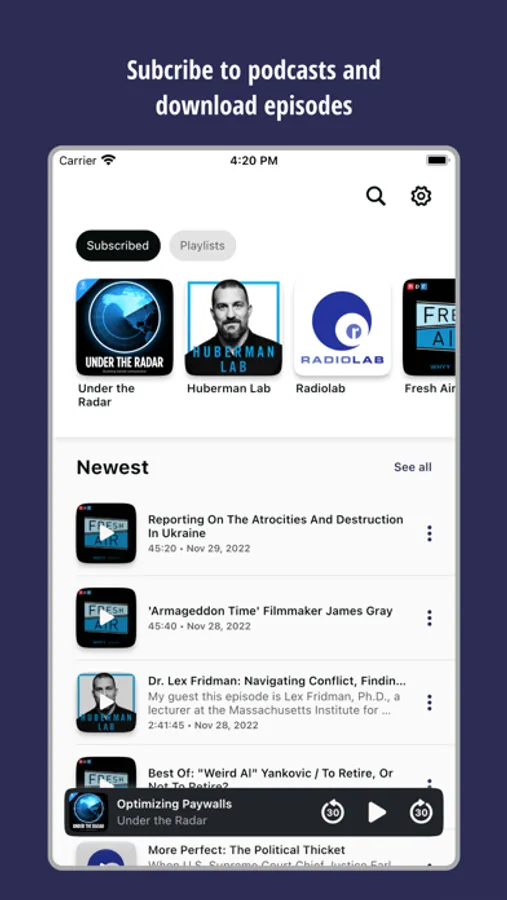 Search for and subscribe to podcasts, create playlists and listen to episodes. We value a smooth podcast listening experience and are thrilled to bring an activated experience to the world of podcasting.