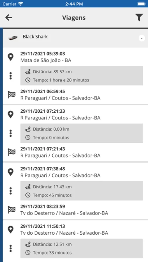 - Visualizar o histórico de viagens dos veículos