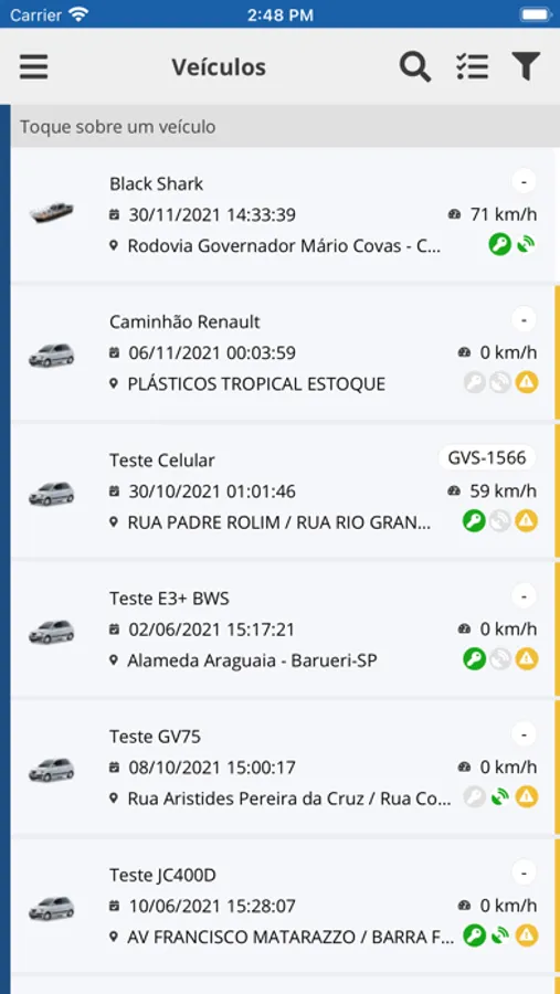 - Monitorar múltiplos veículos com atualização constante