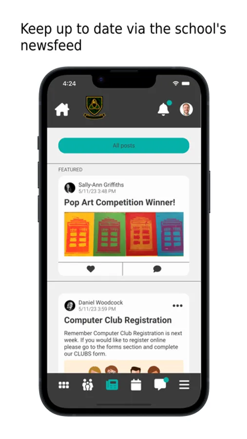 - View the school calendar and noticeboard, with information relevant to you and your child.
