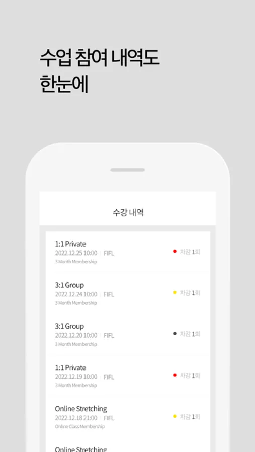 - 자동 푸시 알림 무료 전송 (회원권 만료, 공지사항, 수업 리마인드, 홀딩, 대기)