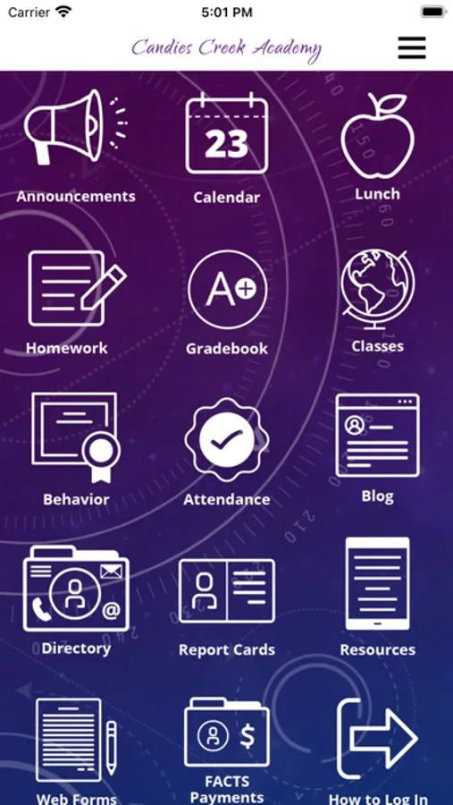 Welcome to the official app for Candies Creek Academy in Charleston, TN. This app is a one-stop-shop for our parents, students, and staff, with anytime, anywhere access to all the tools, content, and communications needed to stay connected and engaged. This app is our primary communication portal and provides easy access to Announcements, Calendar of Events, Student Grades and Homework, Athletics, FACTS Financial and so much more!