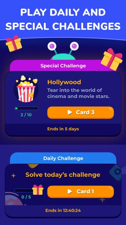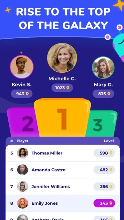Challenge yourself with special and daily challenges, and keep conquering planets to unlock achievements and win new avatars. Invite your friends to join in on the fun and compete against them for the top spot in the Leaderboard. Show everyone who’s the ultimate trivia master!