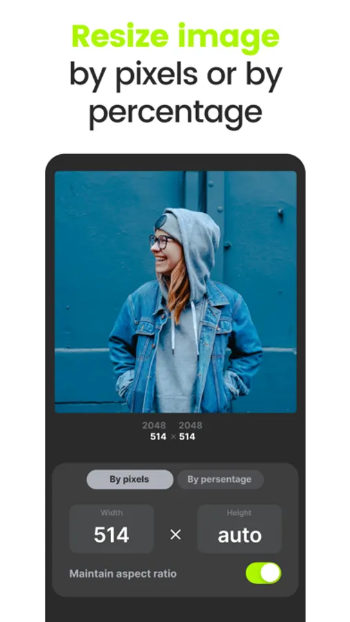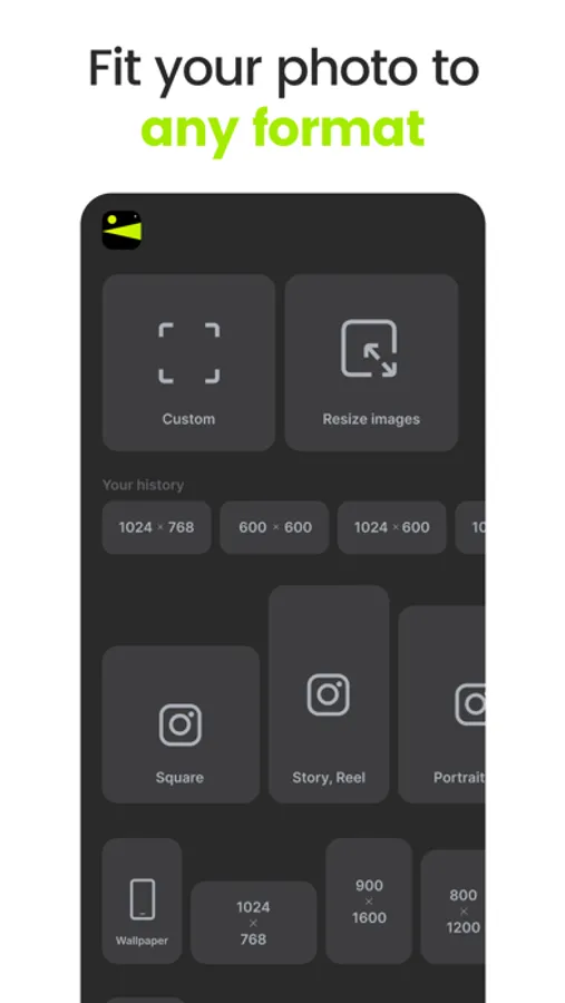 - Resize your image in any format easily; it doesn't matter if it's 1:1 (square) or 16:9. Choose from popular ones, such as Instagram posts, stories, ig reels, Facebook posts, covers, Twitter posts, or set your own size in pixels (define any aspect ratio). Wallpaper format for your phone is also here.