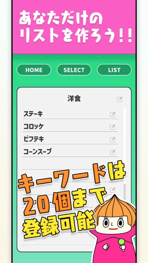 【EDIT LIST】でオリジナルのリストを作りましょう!