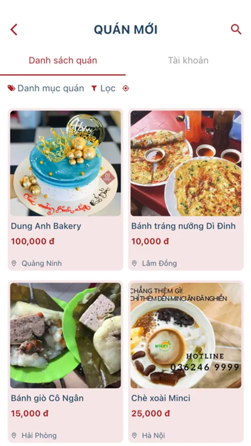 * Các quán có kênh quảng cáo/tiếp cận khách hàng uy tín, chất lượng và hiệu quả.