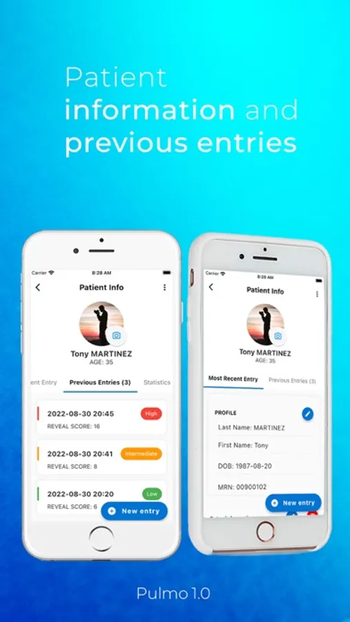 The Reveal 2.0 calculator is a risk score (Reveal score) calculator that calculates risk scores for pulmonology hypertension patients. The scores allow the pulmonologist to provide proper and more efficient patient care. The app also allows for score analysis and trending over time. There are two Pulmo' apps. The standard and the enterprise versions.