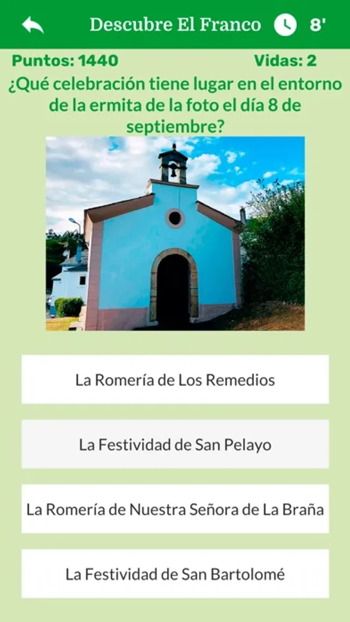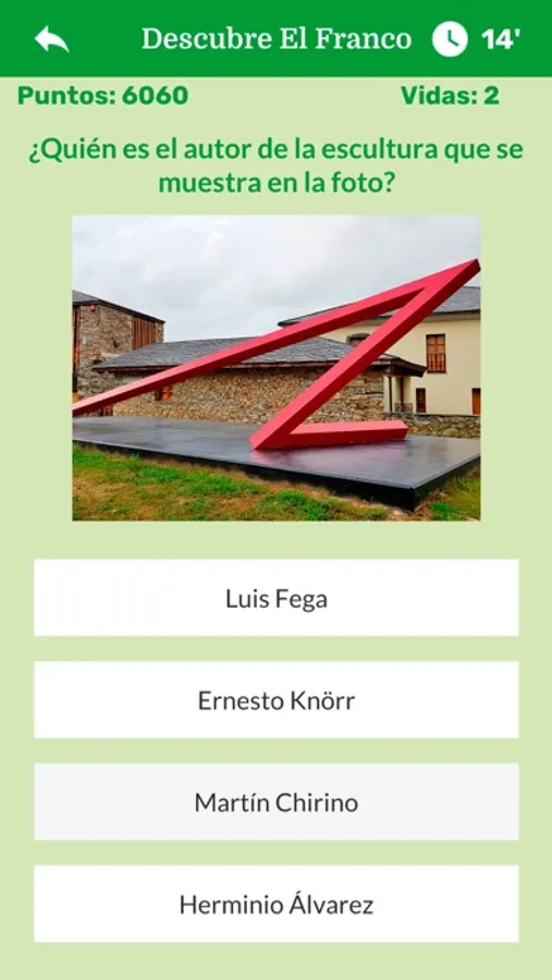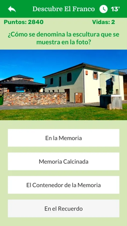 A través de este juego de tipo Trivial / Quiz se van mostrando preguntas sobre del patrimonio cultural (monumentos, esculturas, etc.), lugares de interés, personajes ilustres en diversos campos para que seleccione la respuesta correcta. Para cada una de las preguntas se muestran cuatro posibles respuestas. Hay que responder a cada una de ellas en el menor tiempo posible. En el caso de que la respuesta sea incorrecta se resta una de las 3 vidas iniciales. Si la respuesta es correcta, en función de la rapidez con la que se haya respondido la pregunta se otorga un mayor o menor número de puntos.
