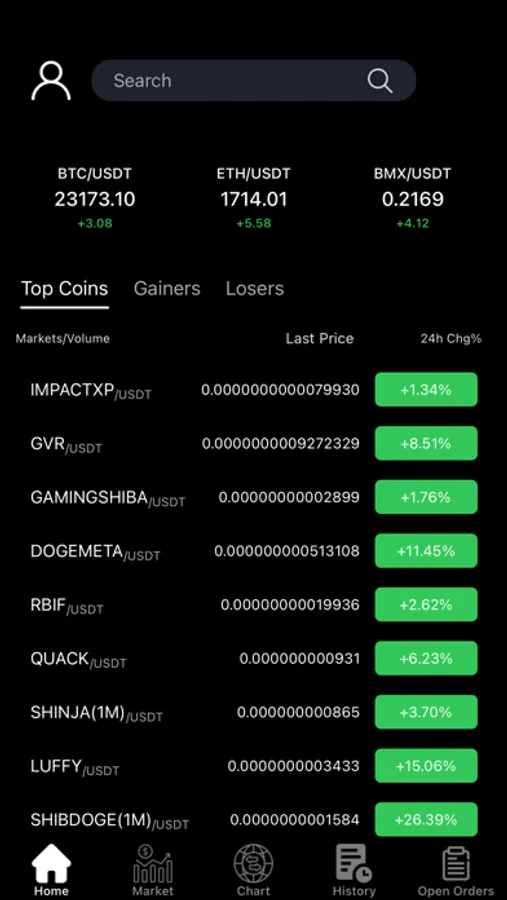 • Observe the stats of different cryptocurrencies, such as Bitcoin, Ethereum, Dogecoin, Solana, Shiba Inu, etc.