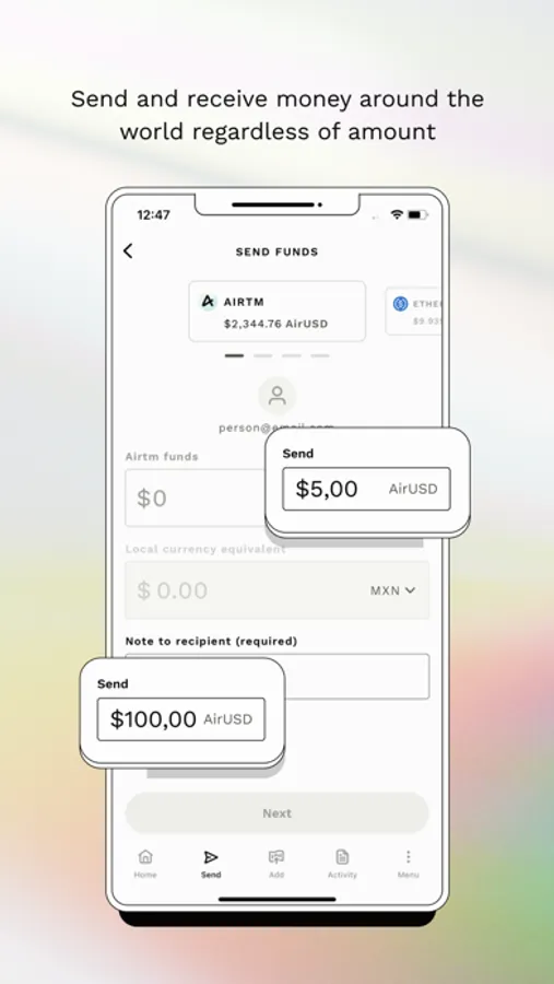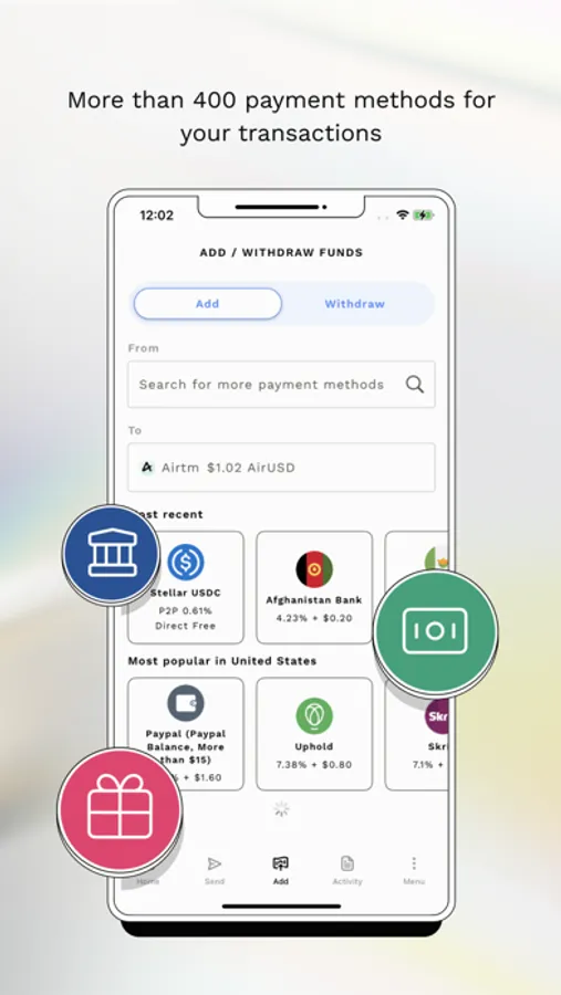 We have over 400 payment methods to add from or withdraw to your account, send and receive money wherever you are. All this in a fast, simple and 100% secure way.