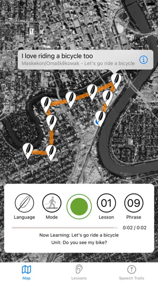 Go outside, have fun and learn an Indigenous language in a whole new way. SpeechTrails is the app that remembers what you've learned - and WHERE you learned it - so you can retrace a language lesson until it starts to sink in. Every SpeechTrail is unique. Map your progress, and let the uniqueness of surroundings jog your memory. It is packed with fun lessons with an outdoor theme and stories and landmarks that you have to travel to. Go slow, go fast, bike, walk, skate or ski - its all up to you!