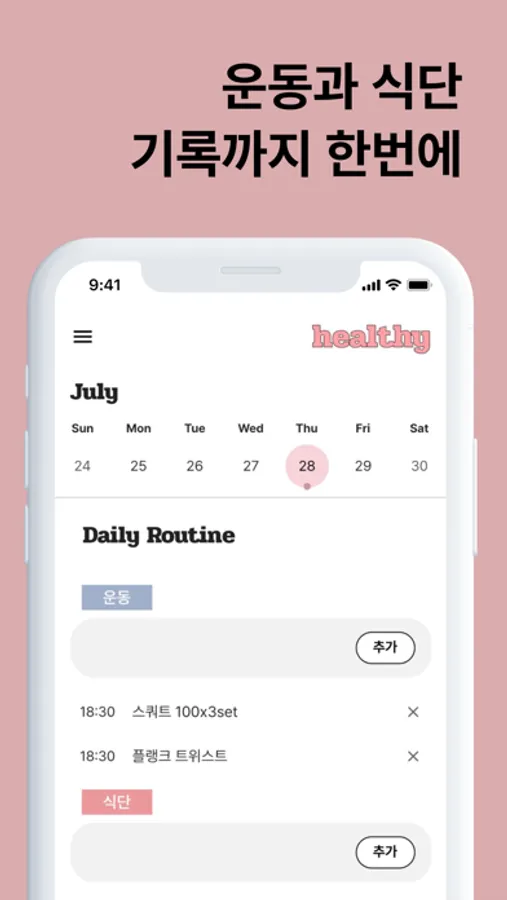 캘린더 기반의 다이어트 앱이에요! 건강한 몸을 만들어가기 위한 나의 노력을 헬씨 캘린더에 차곡차곡 쌓아보세요. 하루 하루의 작은 노력들이 모여 건강하고 멋진 아름다운 몸을 만들어줄거에요. 오늘 운동과 식단 관리가 힘들었더라도, 헬씨 앱에서 지금까지의 노력을 확인해보고, 다시금 힘을 낼 수 있도록 도와줄게요!