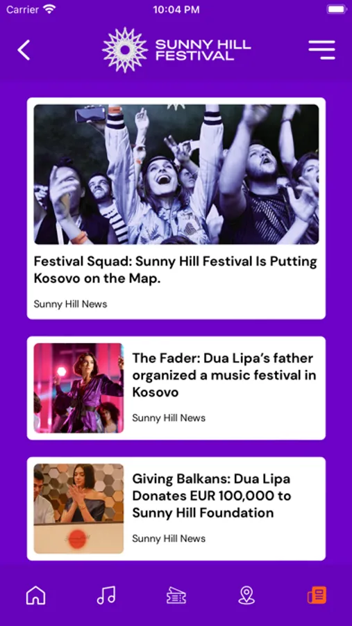 This is the Official Sunny Hill Festival application. In it you can read latest news about the festival, and additional information on how to get there. In the line-up section you can read more about the singers which will take place in the Sunny Hill Festival, in Prishtina and Tirana. Download it to enjoy more things during the festival