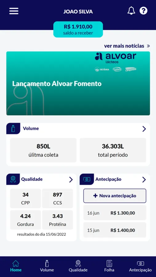 Buscando estreitar ainda mais o nosso relacionamento com os produtores, criamos o aplicativo Alvoar Fomento. O nosso objetivo é trabalhar cada vez mais com transparência, tecnologia e o compartilhamento rápido das informações.