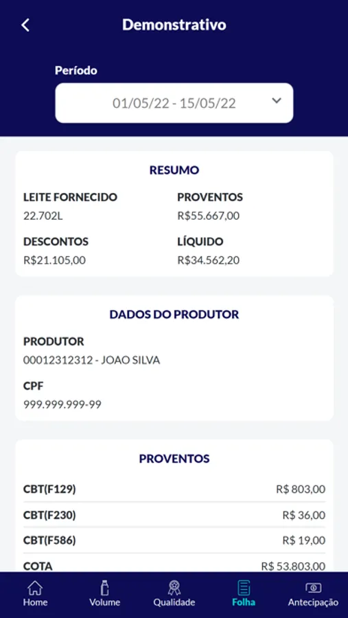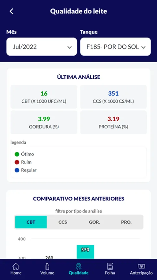Com o aplicativo, o produtor se atualiza sobre os seus resultados de forma simples e prática, sendo possível acompanhar o volume de leite fornecido, conclusões das análises de qualidade e o demonstrativo de pagamento.