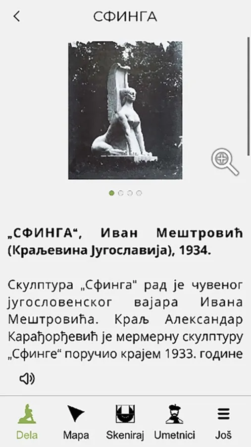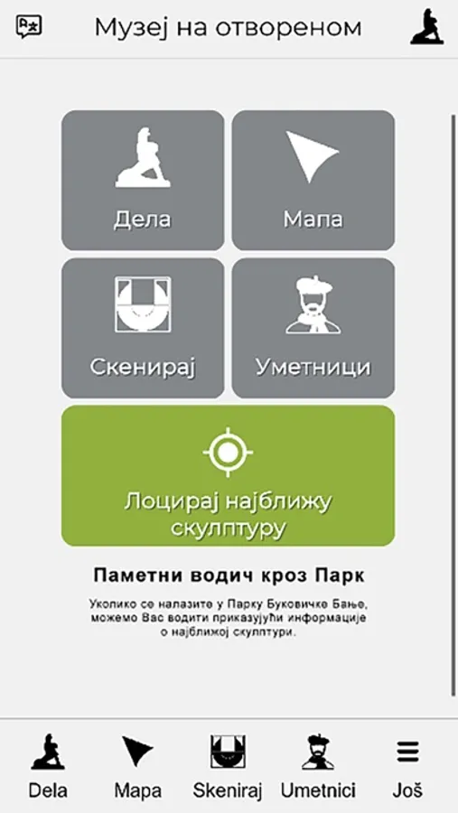 The application is a multimedia guide through the park of Bukovička Banja in Arandjelovac, Serbia, and provides visitors with detailed information about the sculptures in the park. The technology of augmented reality has been implemented to recognize the plates located in front of each sculpture in the park. Also, based on the user's location, it is possible to provide information about sculptures in his vicinity. The information displayed is in the form of text, images, and audio recordings.