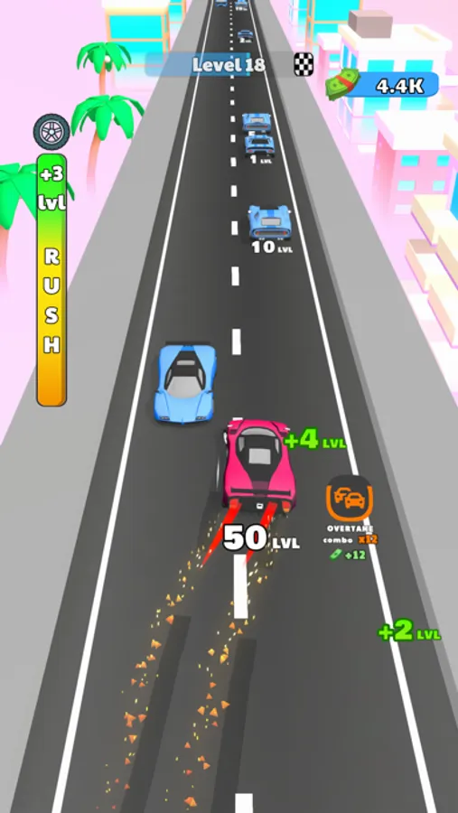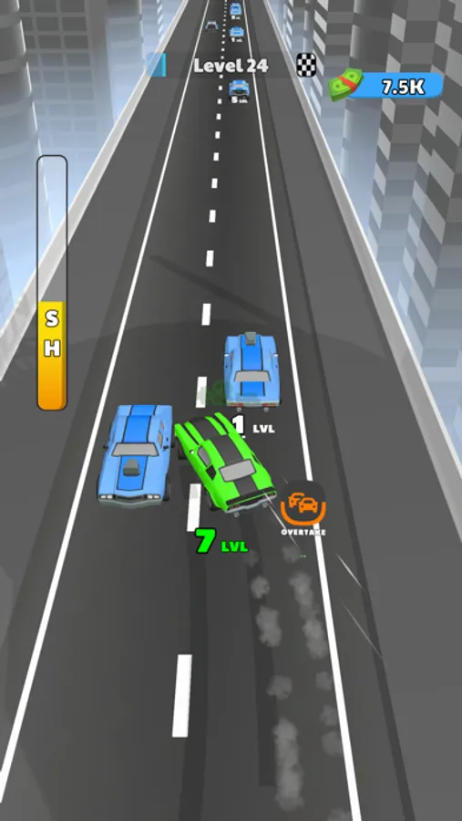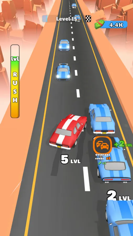 You are in rush hour! You have to level your car up by overtaking other cars and unlock new and better cars as you overtake them!