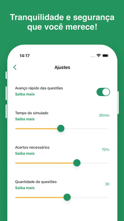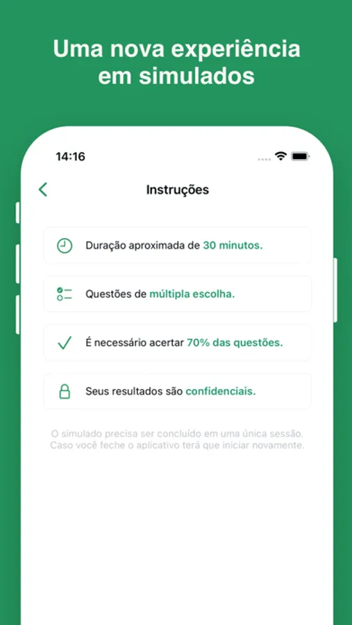 Além disso, nosso aplicativo é extremamente fácil de usar. Com uma interface simples e intuitiva, você pode facilmente navegar pelos simulados e monitorar seu progresso. Você também pode personalizar seus estudos, selecionando o número de perguntas em cada teste e escolhendo as áreas específicas que deseja focar.