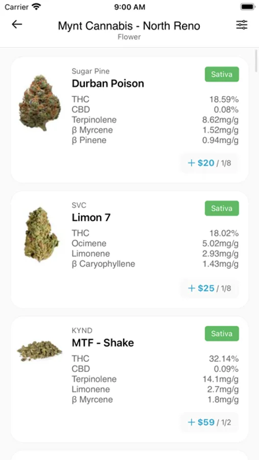 - Quickly search to find deals or find products by type, category, weight, THC/CBD levels and even the terpene combinations you love.