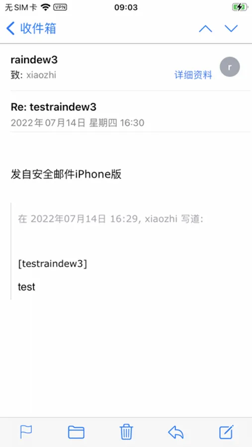 安全邮件是一个企业级移动邮件APP,其具备用户体验好、邮件业务稳定、安全级别高的特效。邮件协议支持SMTP、IMAP、POP等,支持与大部分企业级邮件服务器对接,包括Exchange、Lotus等邮件服务器。APP业务包括邮件、附件、日历、联系人等。