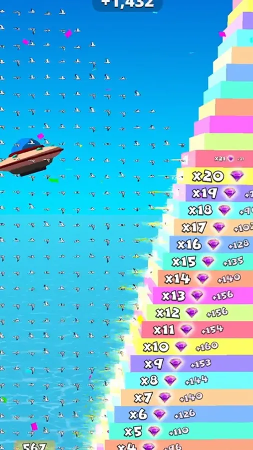 Grow big crowd and reach the end of the bird simulator. Unveil the reward multiplier sequence depending upon your performance. Unlock new rewards and boost your position among competitors.