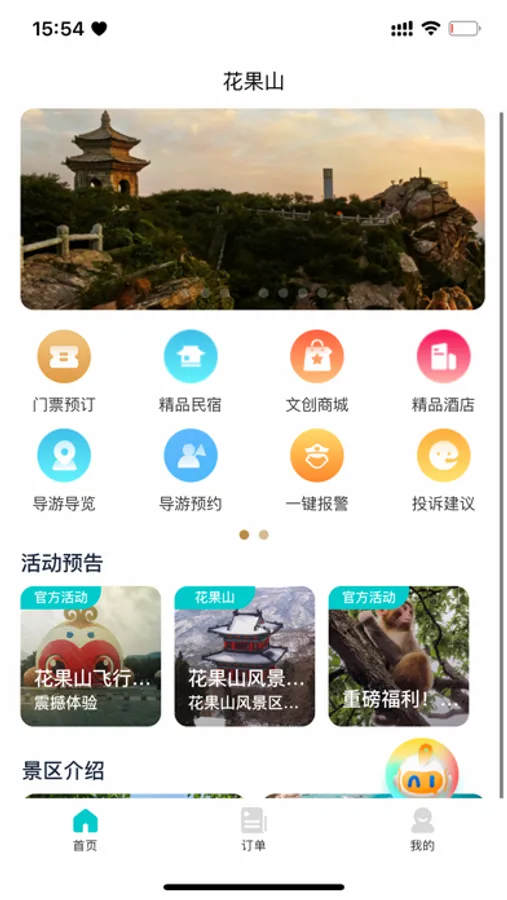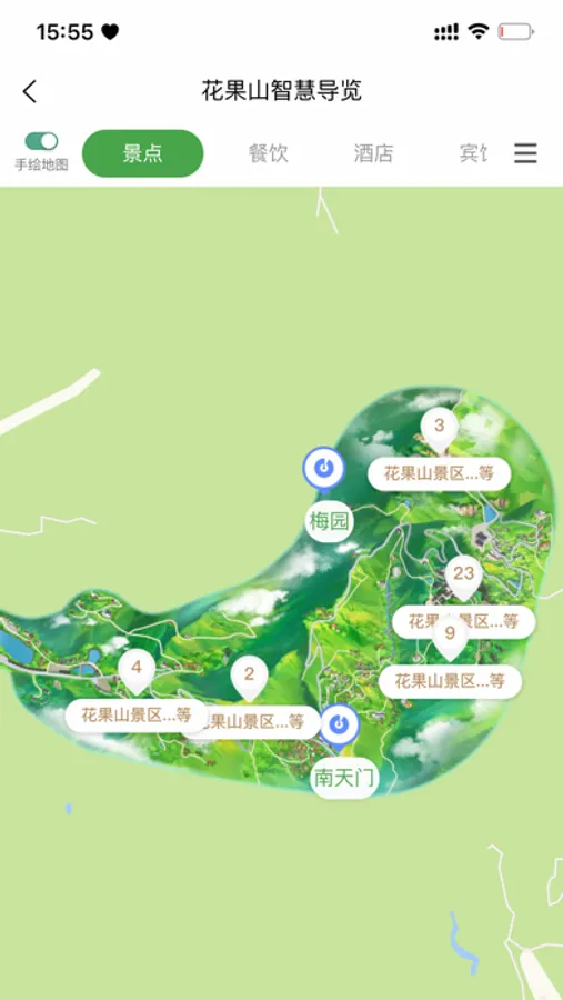 游客在APP在线查询花果山景区美食,酒店,景点门票,特产等景区资讯,预定信息。