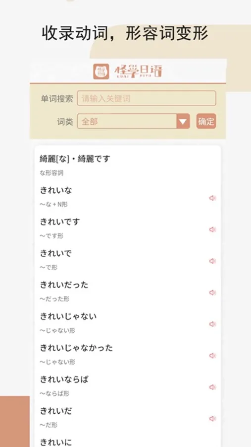 配备有动词,形容词活用表。