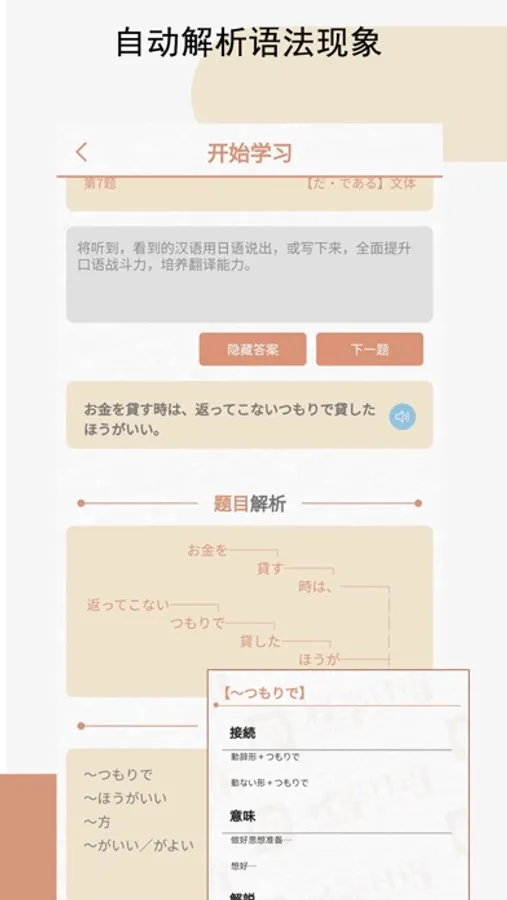 本软件可以帮助用户利用程序分析出句子中使用到的日语语法。