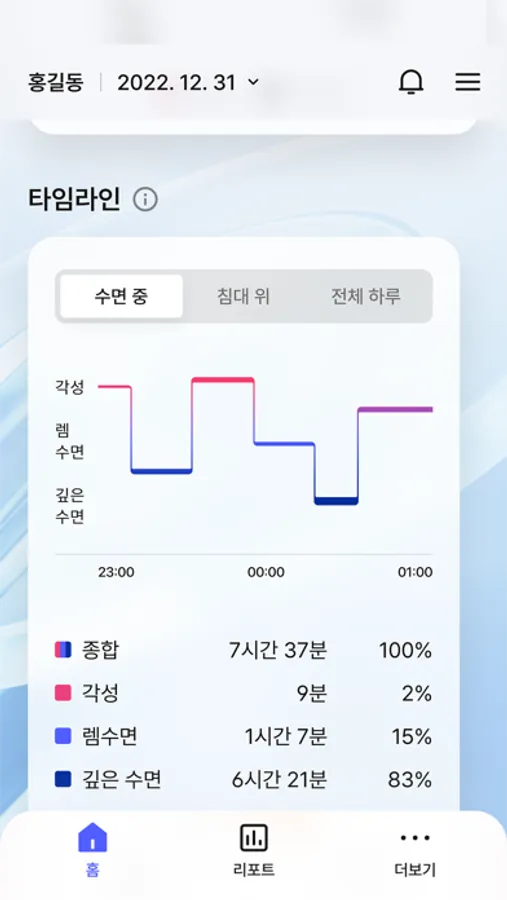 수집된 데이터를 바탕으로 수면건강정보를 알려줍니다.