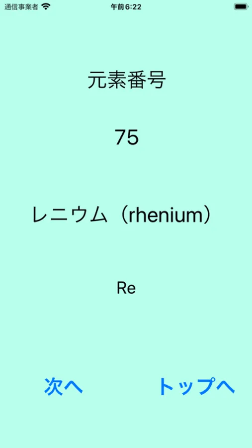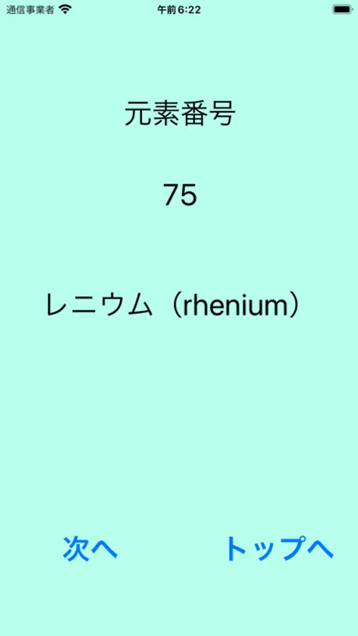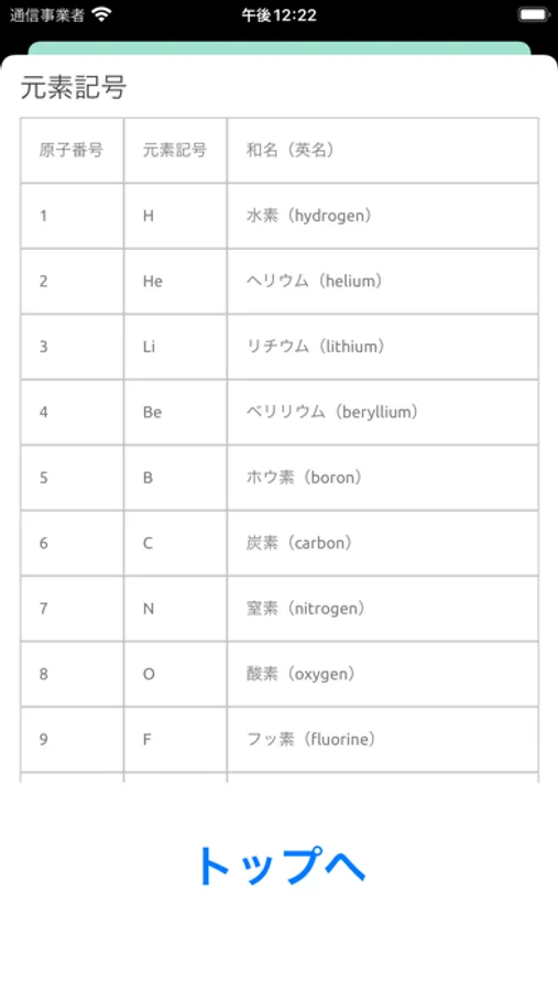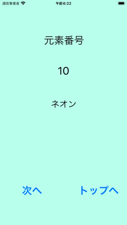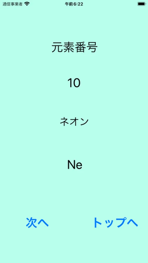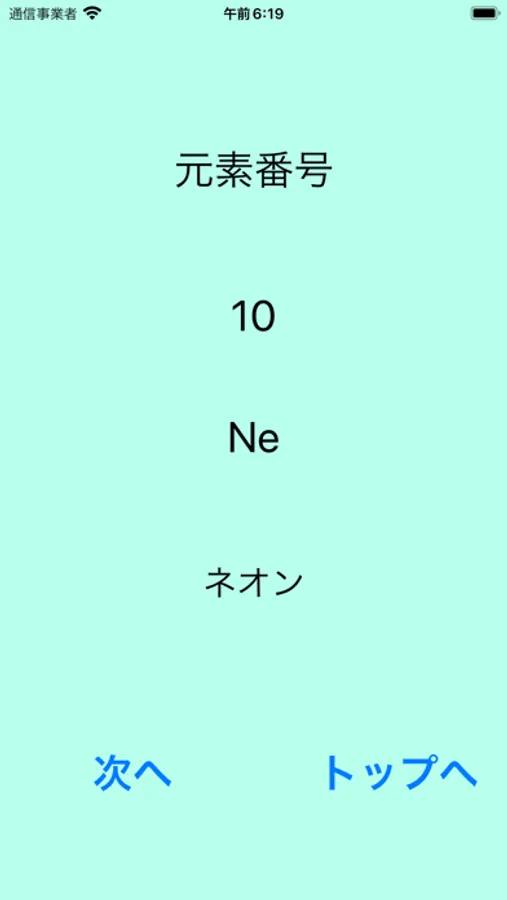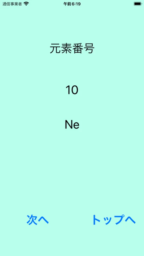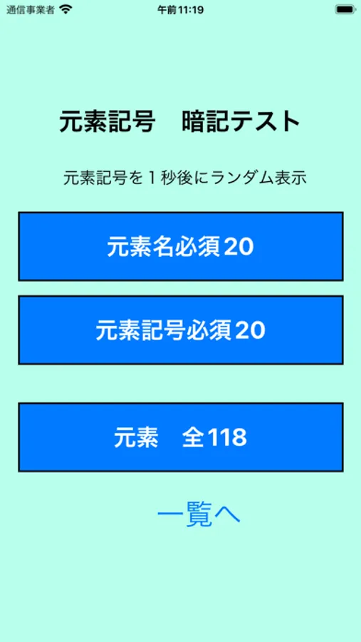 元素記号と元素名の暗記テストアプリです。タップして画面が切り替わったら、1秒後に元素名(元素記号)が表示されるので、その前に回答しましょう。