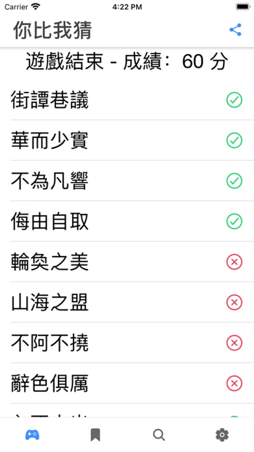 另外有些成語用字較生僻,建議在玩時可以自行判定相似成語為答對。