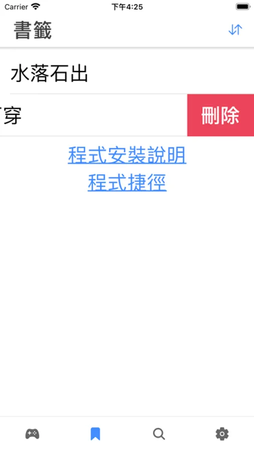 遊戲部分:可作為聚會遊戲。玩法是出題者,點擊遊戲開始,會隨機由離線成語資料抓題,並依設定答題時間一題題切換。每題成語,出題者不可說出其中任何一字,只能用比手畫腳方式讓答題者猜是什麽成語。如果在限時內,答題者猜中某題成語,出題者請按綠色勾。若答題者放棄,出題者可按紅色叉跳過或等答題逾時。所有題目完成後,最後會顯示分數,與每題答題狀況。