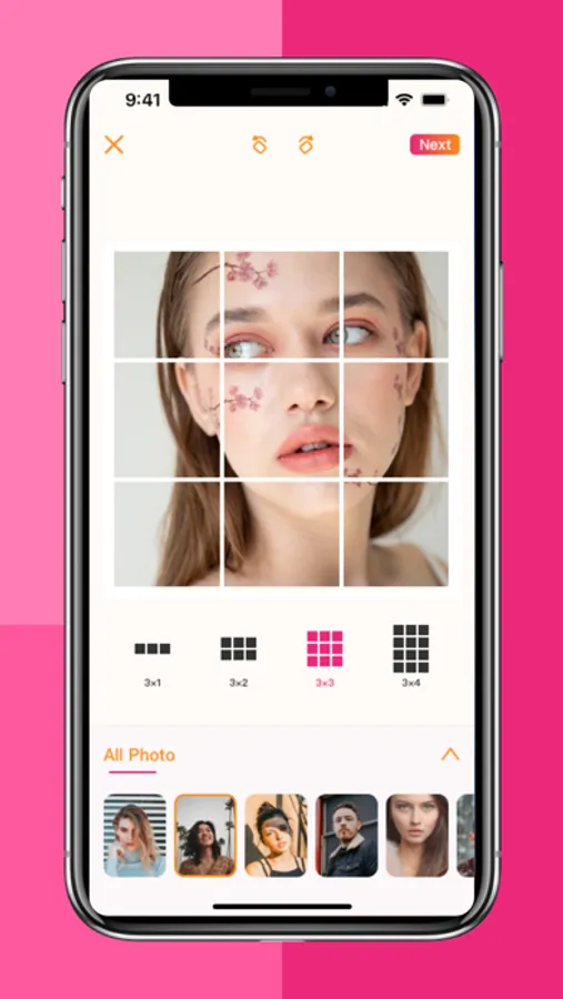 - Choose from a variety of ways to split the image: 3x1, 3x2, 3x3, 3x4...